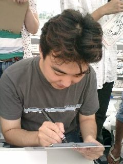 「似顔絵」を書いています。 アート系の出展は珍しいので 1枚書いてもらう事にしました。 良い具合に仕上がったので 勢いで、あと2枚書いてもらう事にしました。 |