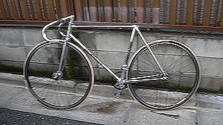 最後にサドル なんか、有り得ない角度で取り付けてしまった この角度は、乗りにくさへの約束手形... 完成 5ヶ月近くもちゃんとした自転車が無くてよく我慢していた コレは大事に乗ろうと思う けど、すでにトップチューブがベッコリとなっているのが泣ける |