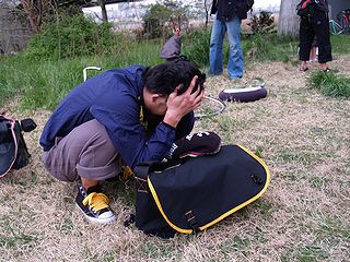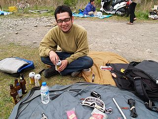バーベキュー準備の為に前日から宿泊した 無意味に気合の入った男 |