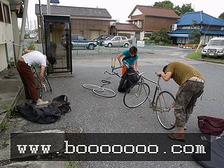 到着後、早速自転車の組立て だけど、何だか香ばしい... わざわざトイレの前で作業をする事は無いと学習する |