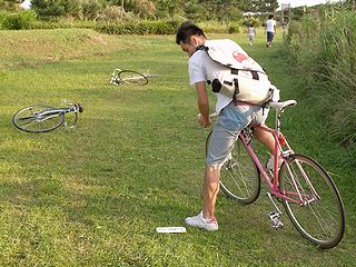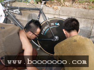 レース前に空気を入れている二人 間違って空気を抜いていたりしていた愉快な二人 |