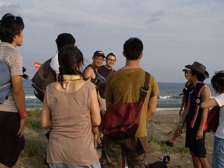 浜辺でレース内容説明 ...ブーの位置からは全く話が聞こえないのだけど レースの着順には全く影響が無いので 問題が無いと言える... |
