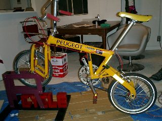 ![]() 作ったばかりのスタンドに いち早くブーの自転車を駐輪 電光石火のいいトコ取り タイヤのサイズが合っていません... |