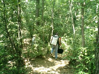道なき道をズンズン進む。 背中の重さが恨めしくも仕方ない。 イザというときに備えている。 |