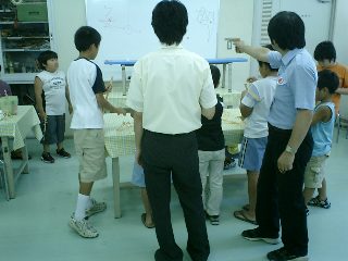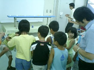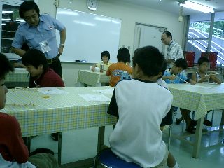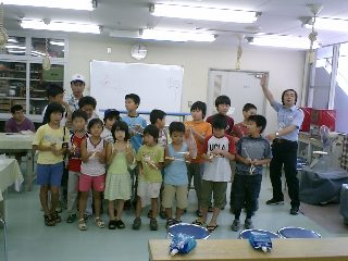 夏休みの良い思い出になっただろうか? 写真右端は「日本ゴム銃射撃協会」の理事長 変身前のポーズではない。 と思う。 |