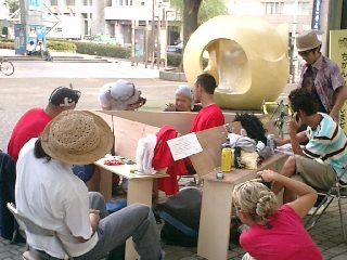 しかし、それぞれの机上にある酒瓶や空き缶が気になる