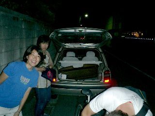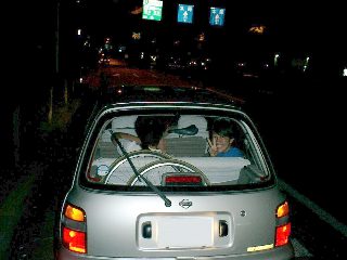 五人乗りの車に四人乗車で、車の挙動が極端に変化 停止時は停止線を大きくハミ出すぐらいの制動力になった。 「この車、欠陥アリなんじゃないのー?」 と、送ってもらう身分で、大胆な発言 気のせいか、ブーが載っている側に車が傾いている。 どうやらコノ車、サスペンションも壊れているみたいだ。 「よし!リコールさせよう!」 |