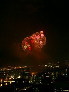 花火も中盤にさしかかると、写真の様に煙がジャマになります この辺も、いつかは改善されるのでしょうか? 無煙花火とか、そんな感じのヤツ |