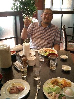 ![]() ホテルでランチをとる事になった が、半ズボン... 入り口で止められなくてよかった... |