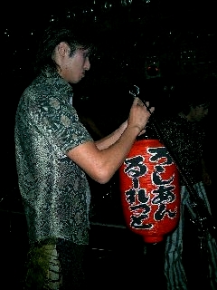 ![]() 急いで自分達でセッティング! 「ちょうちん」が無ければ、きっともうちょっと セッティングが早く終わるケド そこは、バンドのアイデンティティ...ハズせない |