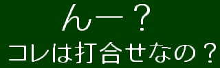 でも、誰も打合せをしている「そぶり」がしないんだよなぁ 少し遅く来たので、事情がわからない のでしばらく様子見 |