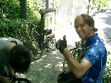 ■本日2回目のおせっかい■ | 何でも4回目のパンクで「パッチ」がもう無いとの事。 「じゃあ、俺のパッチをやるよ」とばかりに カバンをまさぐる。 「パッチ、パッチ-」無いよ。 チューブの交換をもってパンクに対応しているので、 パッチを持ち歩いていないのだった。 突然不安になる。 |